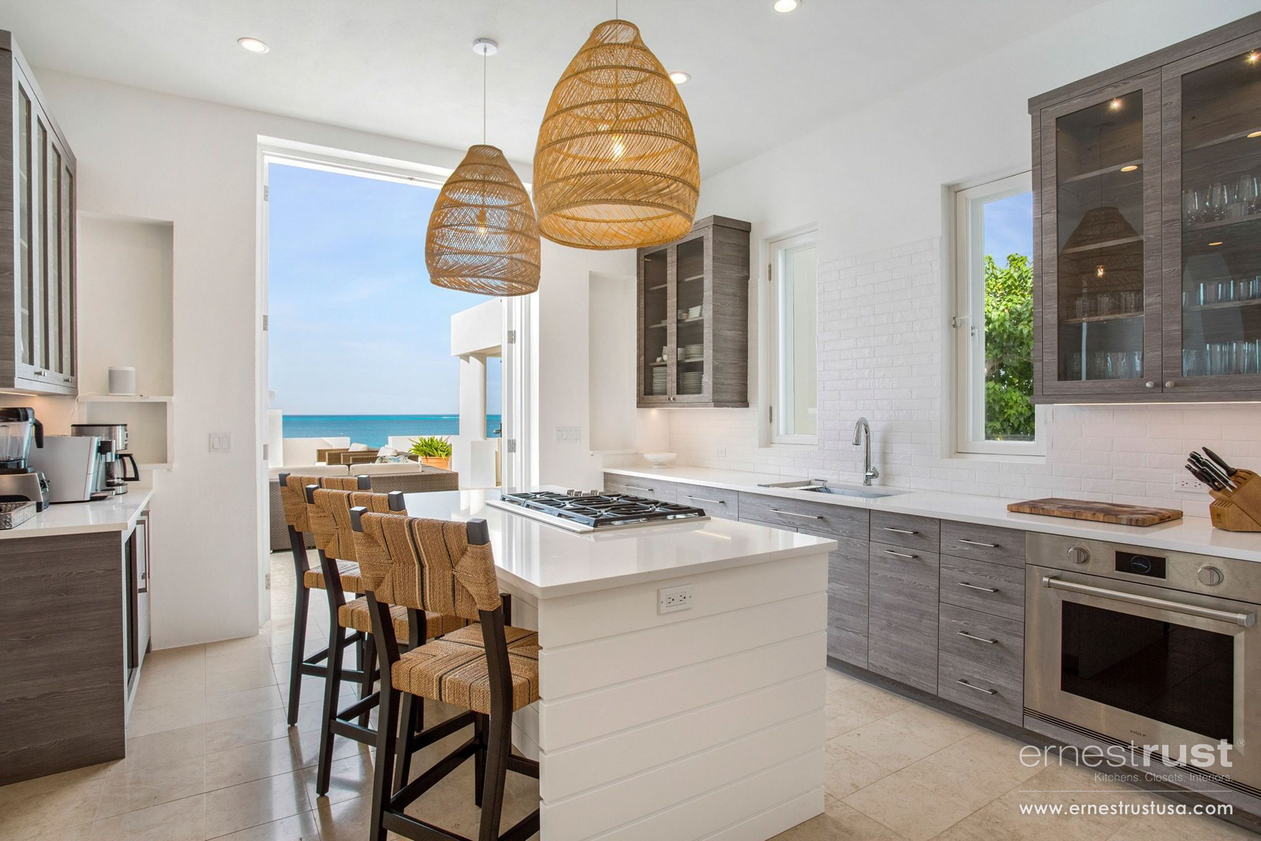 The unique implementation of the kitchen, bathroom, and dressing room on the beautiful island of Anguilla in the Caribbean Sea.
